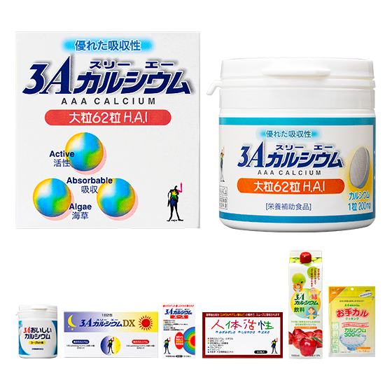 「アミノ酸等の有用成分やミネラル」をカルシウムと一緒に含むことで、従来のカルシウムより吸収利用率の優れたカルシウムを完成させました。25歳を過ぎるとカルシウムの吸収率は低下し、体内から減少します。3Aカルシウムで、毎日のお手軽なカルシウム習慣を始めてみませんか?