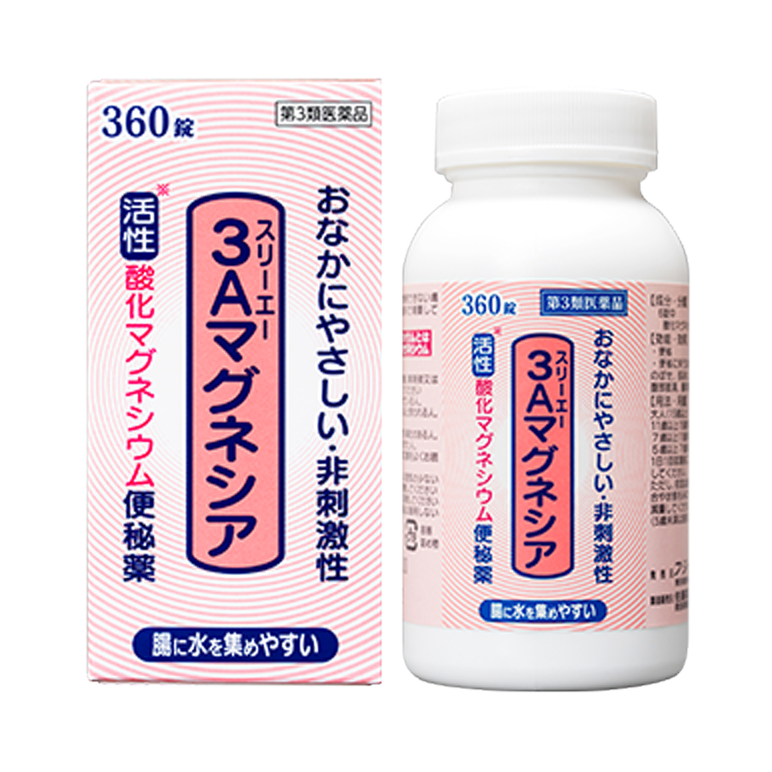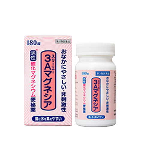 便秘は肌あれ、にきび、吹出物などの原因になるばかりでなく、頭重、腹部膨満、食欲不振、腸内異常醗酵などの不快な全身的症状にまで発展します。マグネシウムの便秘薬「3Aマグネシア」で、快適な毎日をお過ごしください。